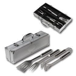 Kõrgkvaliteetne kolme osaline grillitarvikute komplekt pakituna stiilsesse kohvrisse. Peale võimalik tellida graveringut.