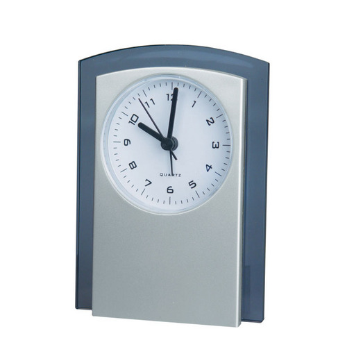 Elegantne äratusega kvartskell kirjutuslauale. Hõbedatooniline kunstmaterjal.
