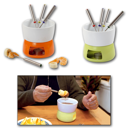 Shkolaadifondüü 4-le, kahvlikesed, keedupott küünlaalusega ja metallhoidik, küünal