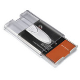 Mati pinnaga läbipaistvast plastikust ja metallist visiitkaardihoidja. Peale võimalik trükkida