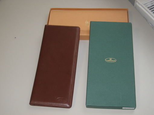 Soliidses karbis on 160 visiitkaarti mahutav pruunist nahast visiitkaardihoidja