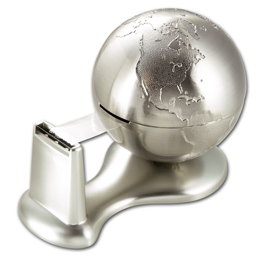 Globuse kujuline teibi- ja magnetiga kirjaklambrite hoidja. Kaasas 6 kirjaklambrit ja teip.