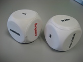 Otsustaja / stressipall, mille üks külg on tühi ning sinna saab panna firma logo.