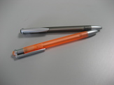 Kolmnurkne hõbedane värviliste kummidega pastapliiats |