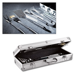 Kõrgkvaliteetne grillitarvikute komplekt pakituna stiilsesse kohvriaae. Peale võimalik graveerida