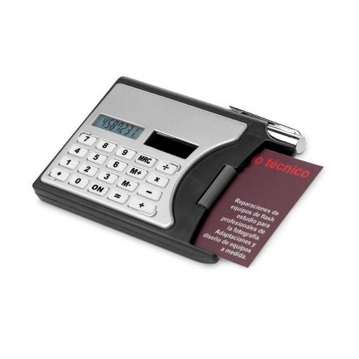 Going to an exhibition? Don't forget to take with you this 8 digit solar powered calculator with ball pen and business card holder.