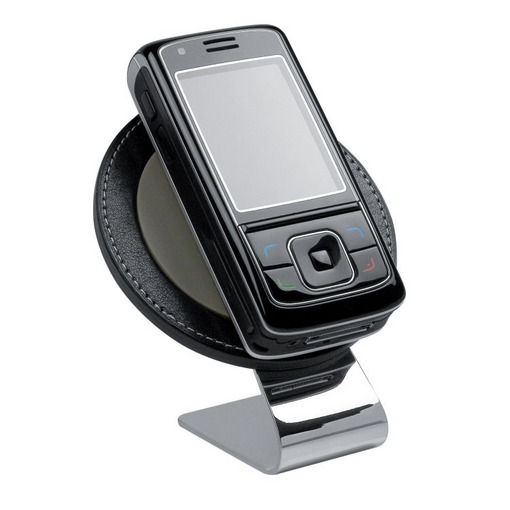 Kroomitud metalljalaga mobiiltelefoni alus.
