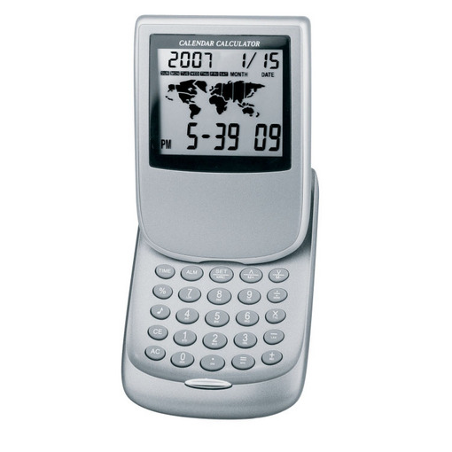 Automaatselt avanev kalkulaator reisile. Alarmkell, vööndikell, kalender.