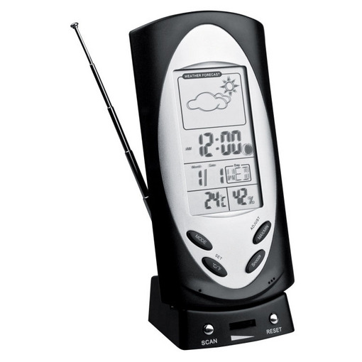 Praktiline kombinatsioon kirjutuslauale. Ilmajaam ilmaennustaja, kella, kuupäevanäidu, termomeetri, niiskusemõõtja ja UKW raadioga sokliosas.