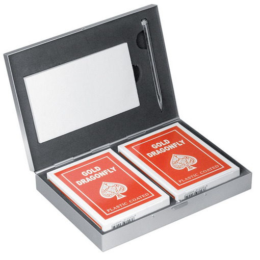 Kaartide komplekt metallkarbis, märkmepaberi ja pastapliiatsiga
