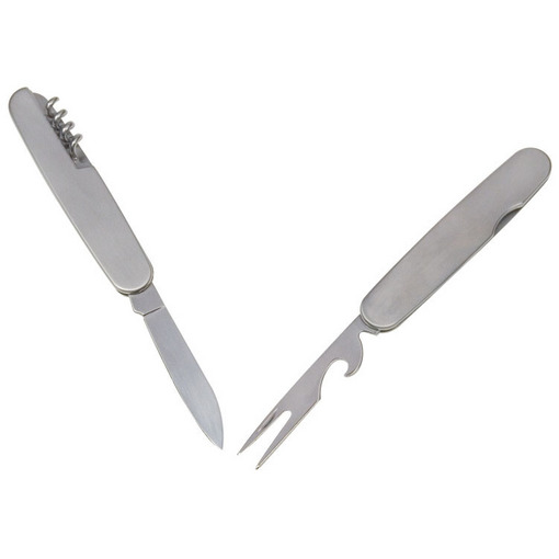Roostevabast terasest taskunuga - nuga-kahvel, korgitser, õllepudeli avaja