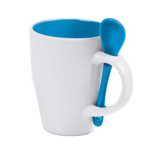 Portselankruusid lusikaga, erievat värvi kruusi sisud.