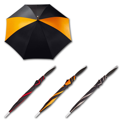 Musta värvi vihmavari, üks siil kontrastset värvi: punane, oranz või hall. Käepide konksu kujuga halli plastiku ja musta kummiga kombineeritult.